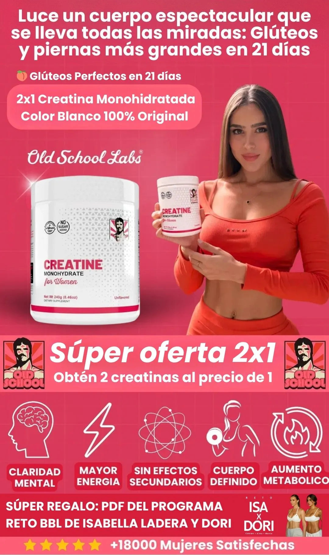 Glúteos más firmes y levantados Con 5 g de creatina Monohidratada + Colágeno y Probióticos
