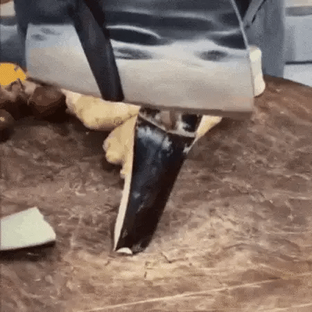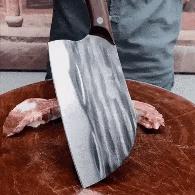 Su filo atraviesa huesos y vegetales duros sin esfuerzo, y su diseño ergonómico cuida tu mano ✋.